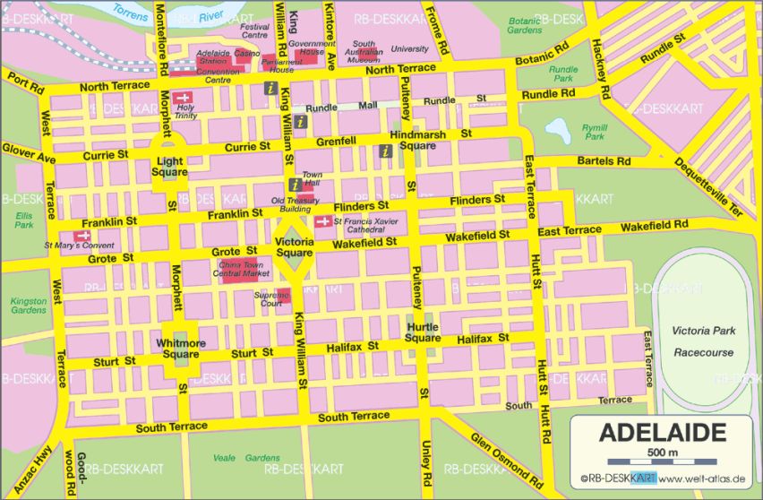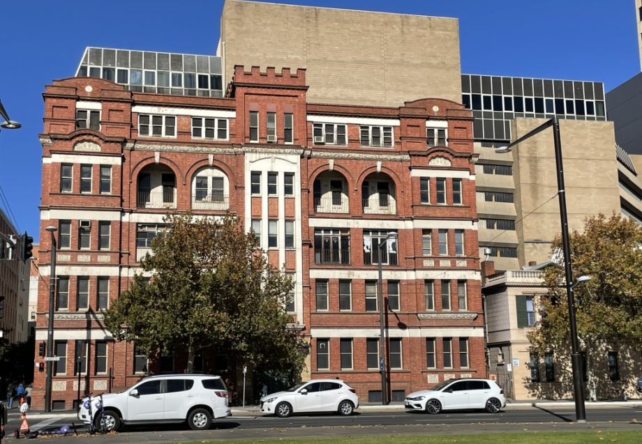 We are now standing on North Terrace, between King William Street and Kintore Avenue. The building to the right is the Parliament of South Australia, one of the oldest continuous democratic legislatures in the world. Construction began in 1874, but the full building wasn’t completed until 1939, more than 60 years later! The long delay was due to funding shortages and the enormous cost of its high-quality materials, including marble, granite, and sandstone.