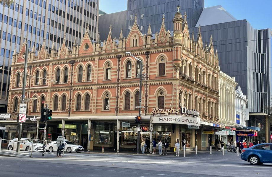 Beehive corner in a landmark in Adelaide city center located on the north eastern corner of King Williams Street and Rundle Mall, making it a landmark both architecturally and commercially.