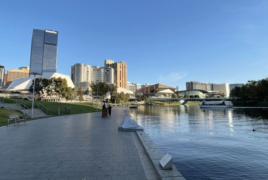 Across the river you can see the Adelaide Oval’s white roof just beyond it. The riverbanks were landscaped into Elder Park and the Adelaide Festival Centre area, making it a favorite spot for walking, cycling, and picnics. It’s one of the best places to feel Adelaide’s blend of nature, culture, and modern design, a peaceful river scene framed by beautiful architecture and lively public spaces.