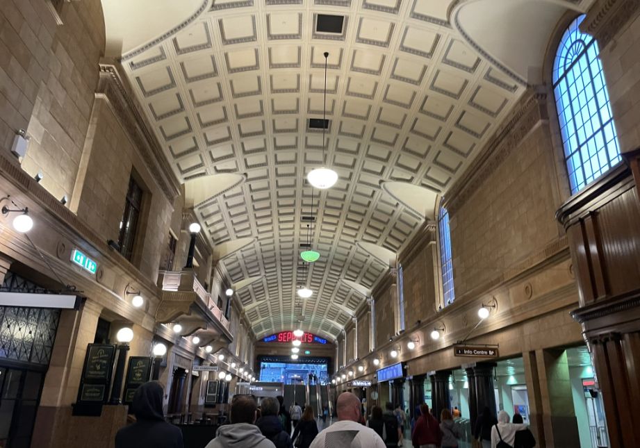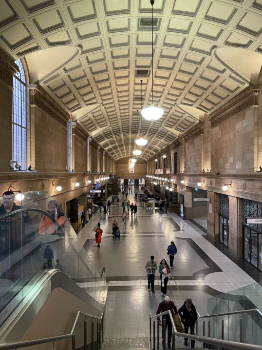 Inside, you can still sense the station’s history, the grand arches, polished stone, and echoes of early 20th-century travelers bustling through.