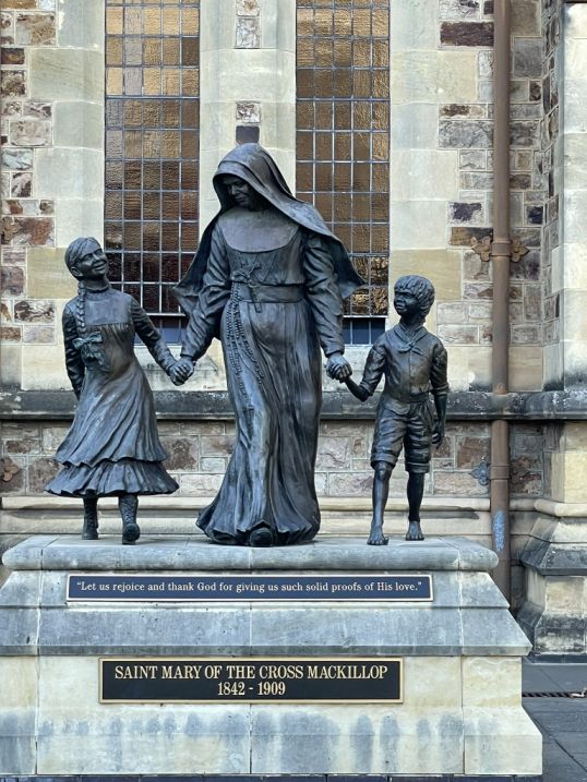 A sculpture of St Mary of the Cross MacKillop in the courtyard of St Francis Xavier’s Cathedral is a meaningful addition to the site, it connects Adelaide’s Catholic heritage with Australia’s own saint.