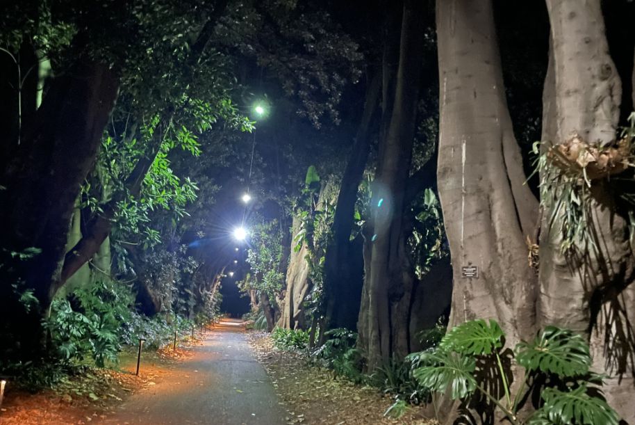 As we moved closer, the light grew brighter, and the restaurant slowly revealed itself, a warm, glowing space nestled deep in the garden, almost like a hidden secret waiting to be found.