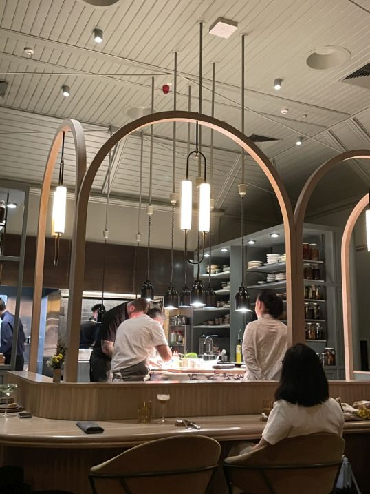 When we stepped inside, we saw the open counter where all the chefs were working behind it, moving with quiet focus and precision, filling the air with the scent of herbs and cooking.