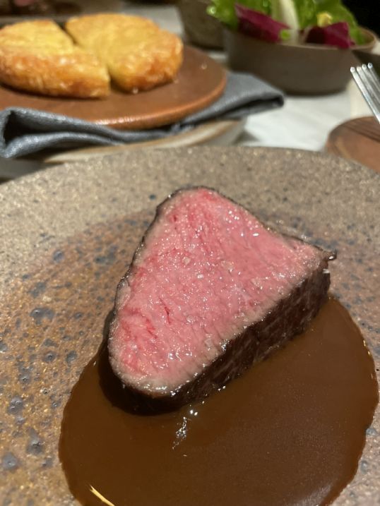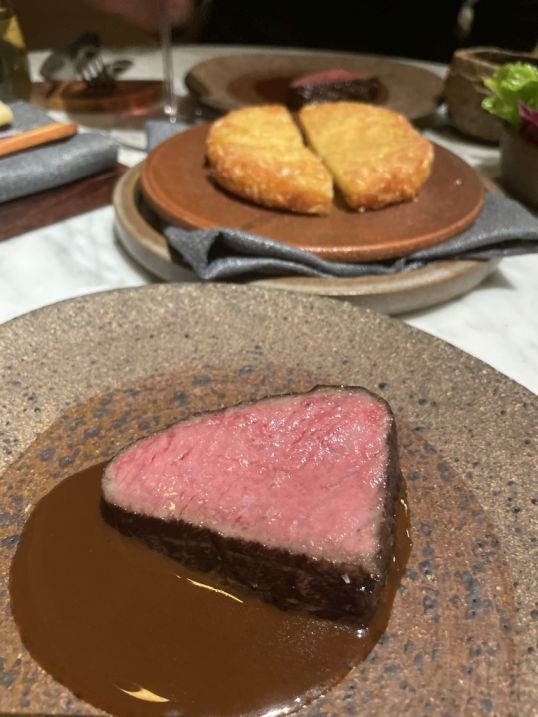 Our last savory course was a beautifully presented A7 wagyu dish.
