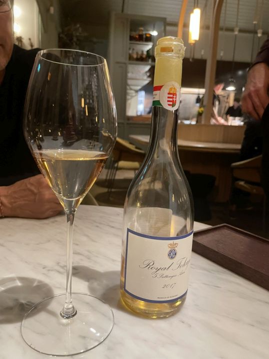 The last pairing of the evening is a dessert wine, Royal Tokaji 5 Puttonyos Aszzu Blue label 2017 from Hungary.
