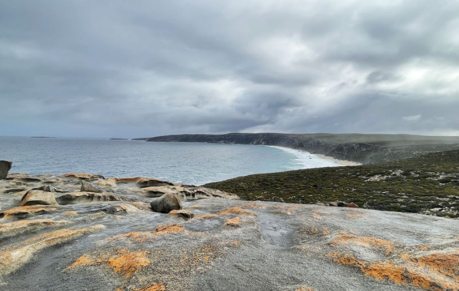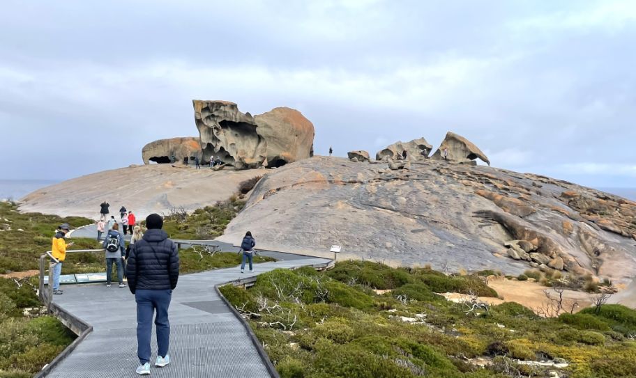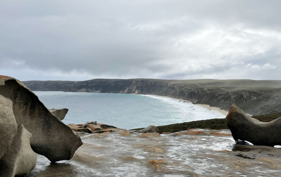 We are now a few feet away where the walkway ends and the granite world begins. It’s one of those views where Kangaroo Island feels raw, ancient, and alive all at once.