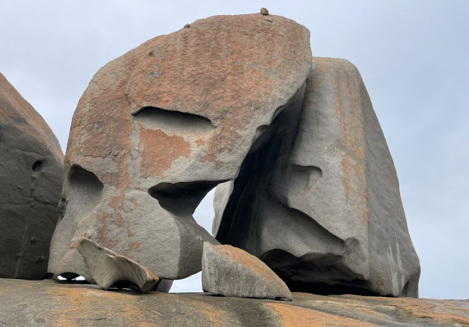 The next stop is at the Remarkable Rocks, one of Kangaroo Island’s true icons, and the landscape around them tells a powerful story of both ancient geology and recent recovery. Remarkable Rocks sit within Flinders Chase National Park, and they are more than 500 million years old, older than most mountain ranges on Earth. They’re made of granite, formed deep underground from molten magma that cooled slowly. Over hundreds of millions of years, wind, rain, and waves sculpted the exposed granite into the surreal, smooth, hollowed shapes you see today, some look like shells, others like animal silhouettes or giant sculptures. The first European to describe them was Matthew Flinders, the British navigator who charted much of Australia’s coastline in the early 1800s. He called them “remarkable” in his journal, hence the name Remarkable Rocks.