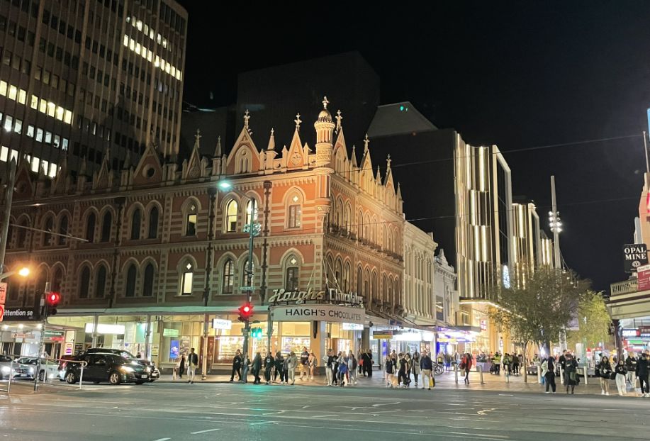 We passed by the iconic Haigh's Chocolate called "Beehive corner" located a at the corner of King William Street and Rundle Mall/Street.