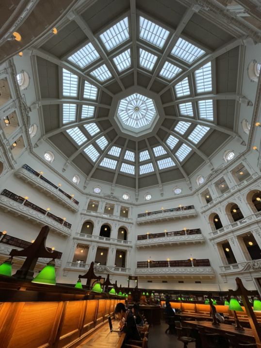 We are now at the State Library of Victoria. Founded in 1854, it is Australia’s oldest public library and one of the first free public libraries in the world. he library was established with the idea that knowledge should be available to everyone, regardless of wealth or status, a very forward-thinking concept at the time.