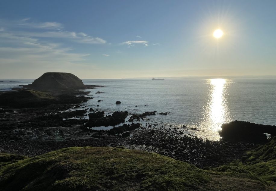 The Nobbies are named after the large dome-shaped rock formations that rise dramatically from the ocean just off the coast. These rugged basalt outcrops were formed millions of years ago by volcanic activity and now stand as striking landmarks against the crashing waves. The surrounding area is equally stunning, with windswept cliffs, rolling green headlands, and seabirds circling above, all framed by the endless expanse of Bass Strait.
