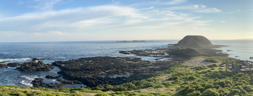 The Nobbies is a rocky headland at the western tip of Phillip Island, also referred to as Point Grant. You’re looking out over rugged cliffs and platforms, including Seal Rocks just offshore