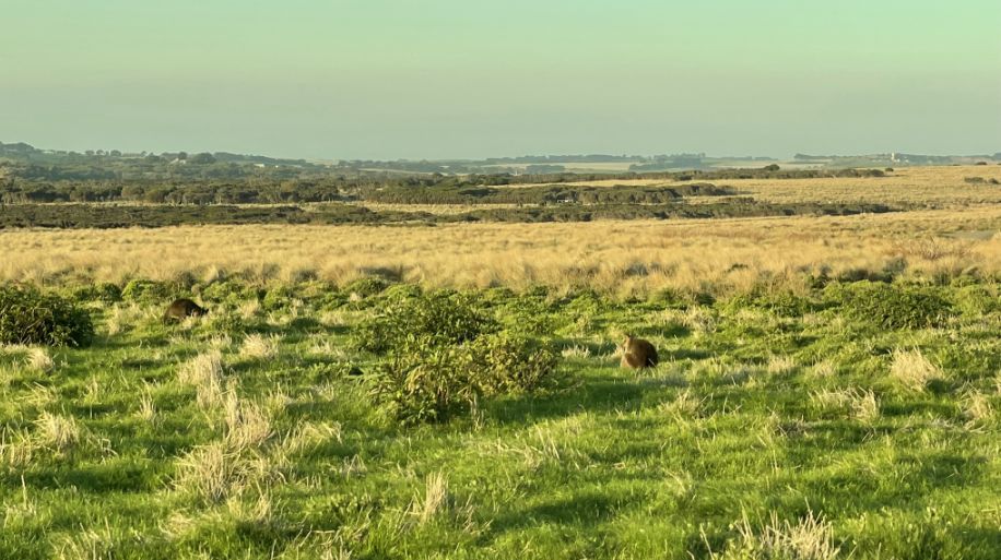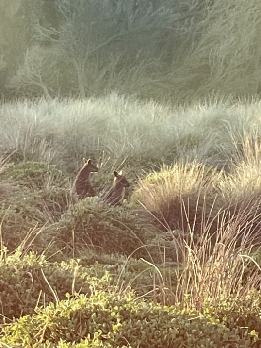 At this time of the day the kangaroos and wallabies are typically foraging for food which include grass, leaves, and flowers.