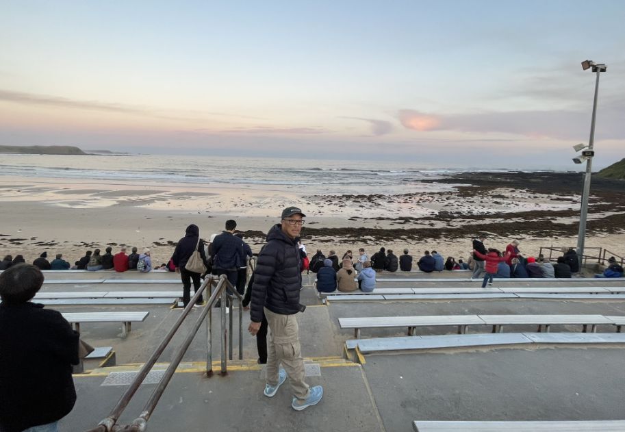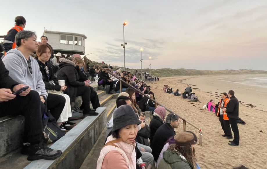As everyone settles onto the viewing platform, a hush falls over the crowd. A guide steps forward and begins to speak softly, explaining what to expect. They remind visitors to keep still, stay quiet, and avoid using cameras with flashes so the penguins won’t be frightened. The guide shares a few fascinating details, how the penguins spend the whole day fishing at sea, sometimes swimming many miles, and then return together in little groups, known as "rafts", just after sunset.
