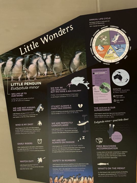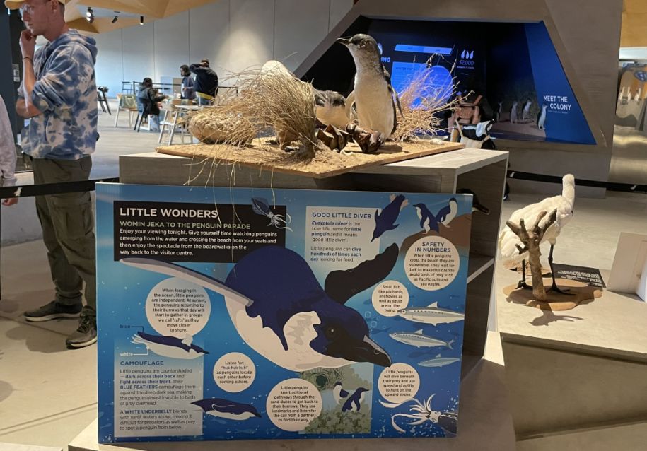 The blue birds, and the seals are all linked to the marine environment and conservation focus of Phillip Island Nature Parks.