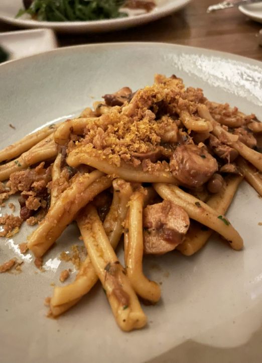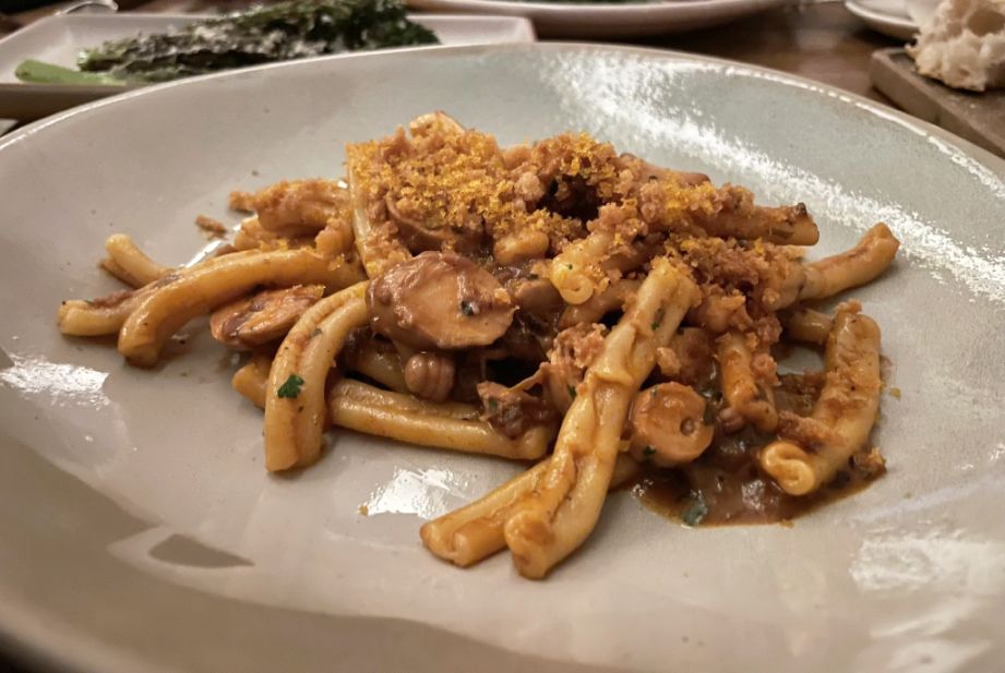 Casarecce polpo all'Inferno-Tomato, chilli braised octopus, bottarga.