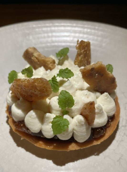 Sformato di zucca, red kuri pumpkin flan, new season walnuts, pate brisee crumb, dill.
