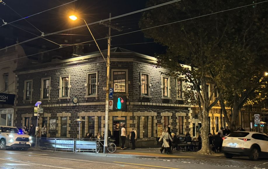 The Grace Darling Hotel, a landmark on Smith Street and one of Melbourne’s oldest pubs. The grey and white stone exterior with its corner position gives it a distinctive look, standing out among the more modern and graffiti-covered surroundings. Built in the mid-1800s, it has a rich history tied to the city’s early days, and today it’s known as a lively spot for food, drinks, and live music. Its heritage façade adds character to Fitzroy, blending old-world charm with the neighborhood’s creative edge.