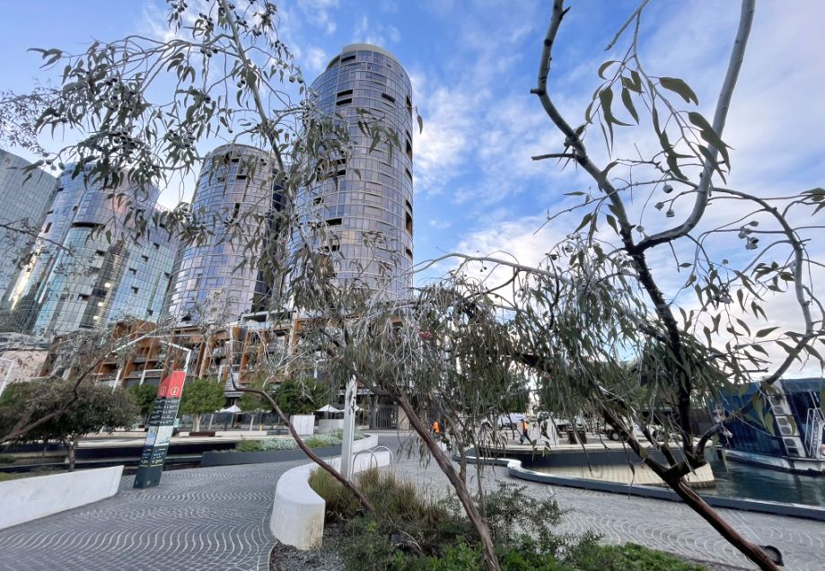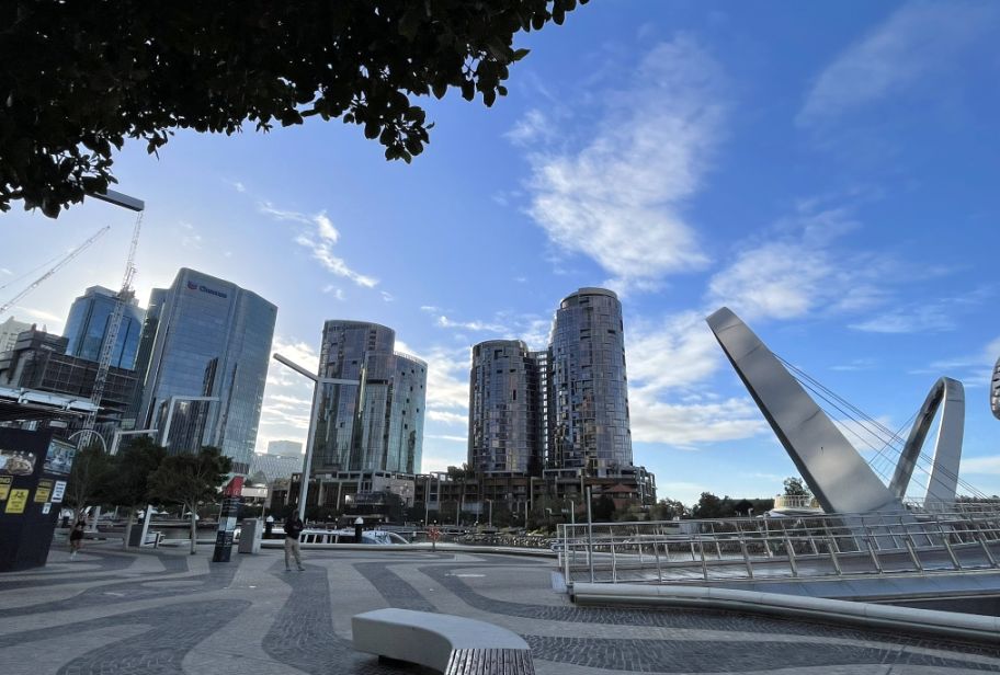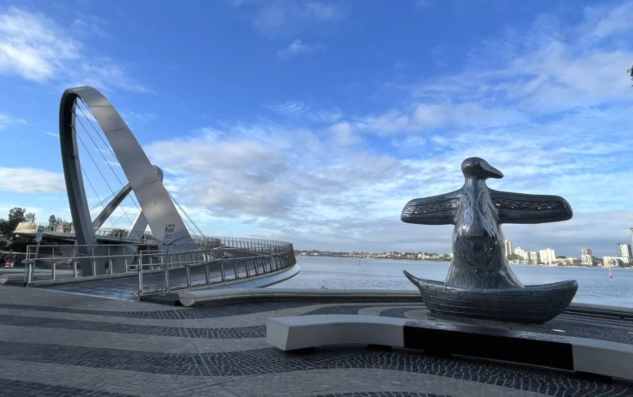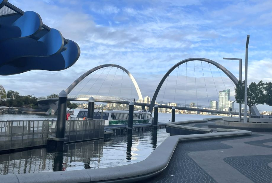 From here you can see the two big arches of the Elizabeth Quay Bridge.