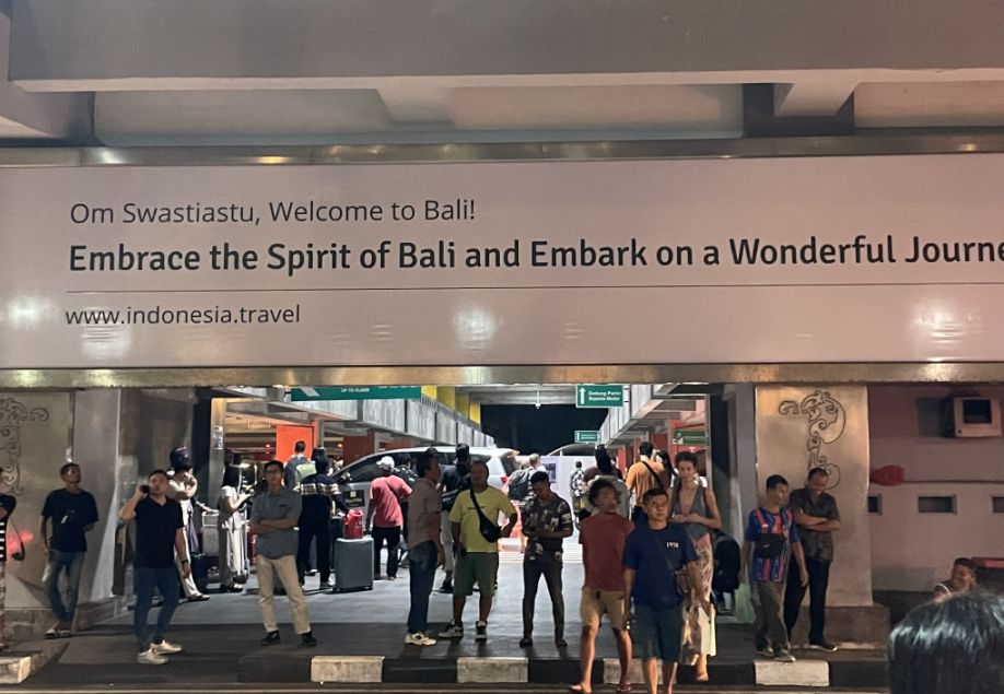 When we arrived in Bali, the airport was absolutely chaotic. I don’t think I’ve ever seen so many people packed into one arrivals hall. Everywhere we looked, there were drivers holding up pieces of paper with guests’ names, a whole wall of signs moving above the crowd.