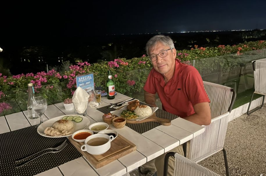 Hoa ordered a fried duck with rice and green beans. We can't wait to start our adventure in Bali.