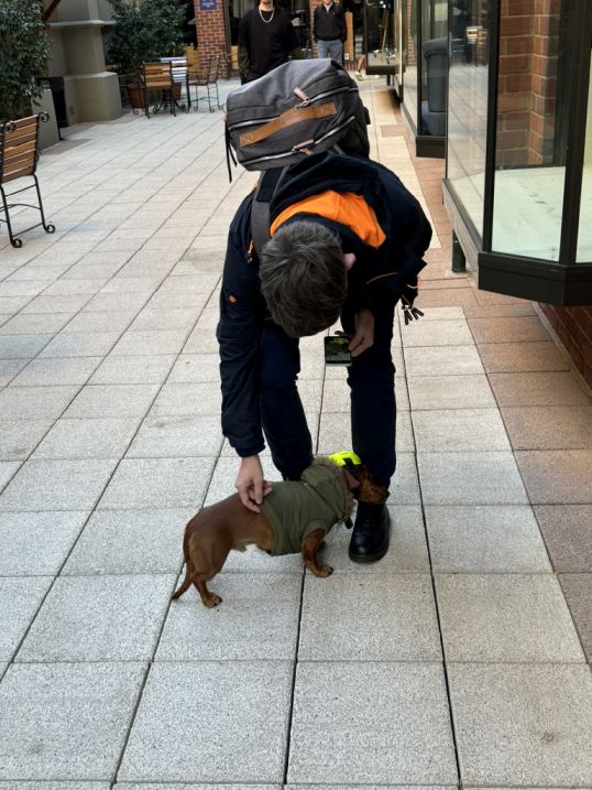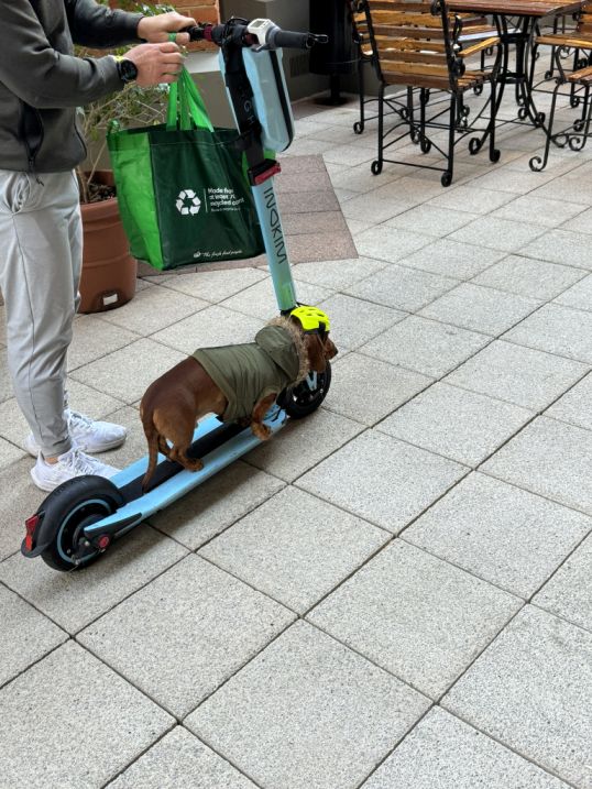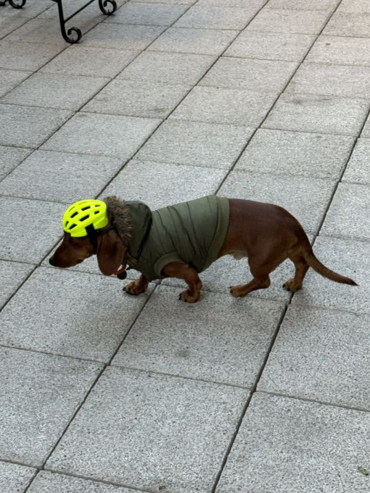 Along the way we met this really cute dog wearing a helmet.