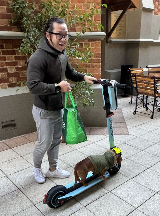 He was getting ready to get on the scooter. So cute!