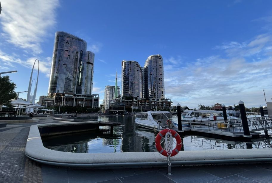 Elizabeth Quay is so quiet in the morning, and that calm makes it even more beautiful. With the blue sky reflected on the water and the city still waking up, the whole area feels peaceful and bright, a perfect way to start the day.