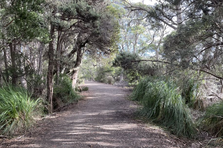 The path was lined with tall trees, and as we walked, glimpses of the shimmering lake began to appear through the branches.