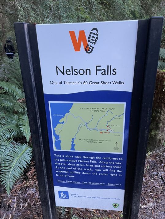 We are now starting Nelson Falls Track, a short and scenic walk that is about .8 mile that winds through the lush temperate rainforest of the Franklin–Gordon Wild Rivers National Park.