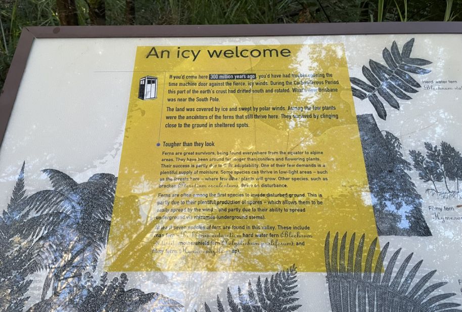 A panel titled “An Icy Welcome”, explained how this entire landscape was shaped by glaciers during the last Ice Age, when massive sheets of ice carved out valleys and left behind the rivers and waterfalls we see today. The sign helped put the scenery into perspective, reminding us that the moss-covered rocks, flowing streams, and deep valleys around Nelson Falls are part of a landscape millions of years in the making, sculpted slowly by ice and time.