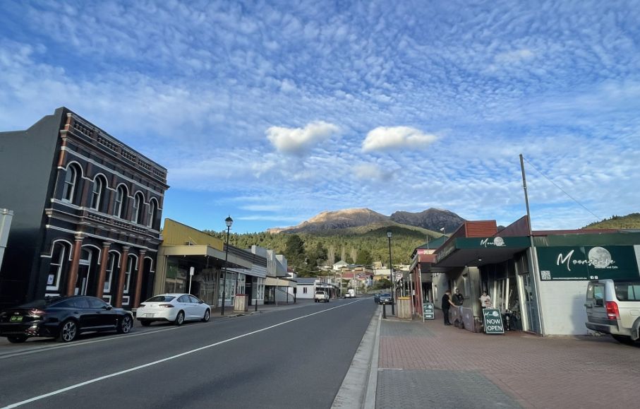 Orr street is the main commercial street in Queenstown. The town is pretty quiet with a population 1,772 people as of the 2021 Australian census.