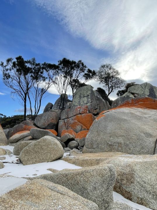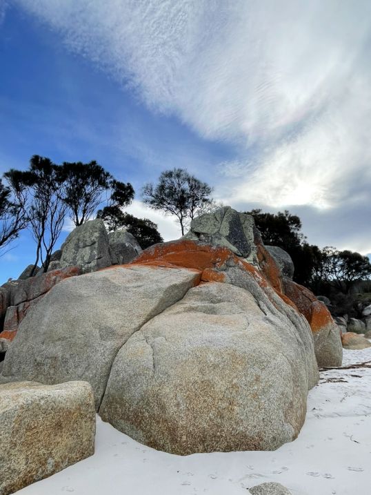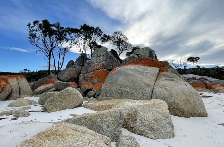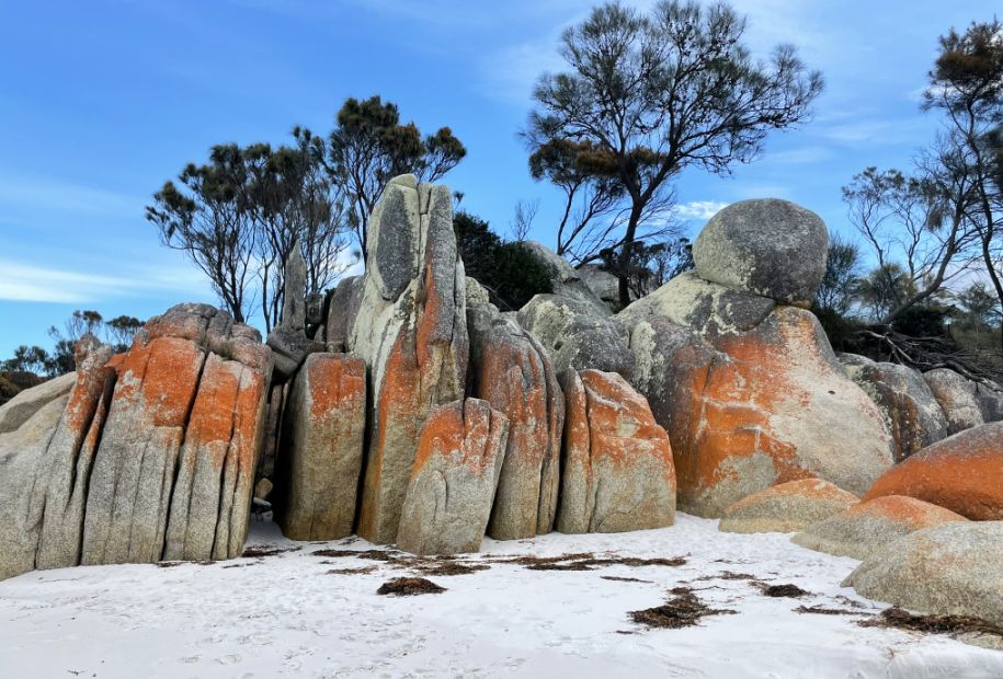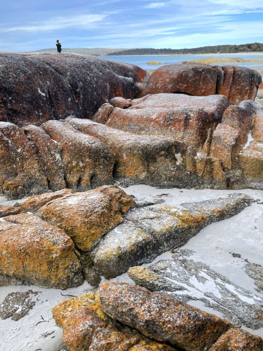 All along the Bay of Fires, the boulders are scattered in a way that feels both natural and sculptural, as if the coastline itself arranged them over time.