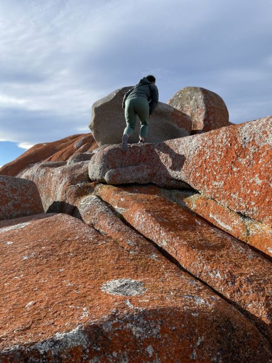 Some sections were smooth and slippery from the lichen, while others were rough with small cracks that offered just enough grip for our hands and feet.