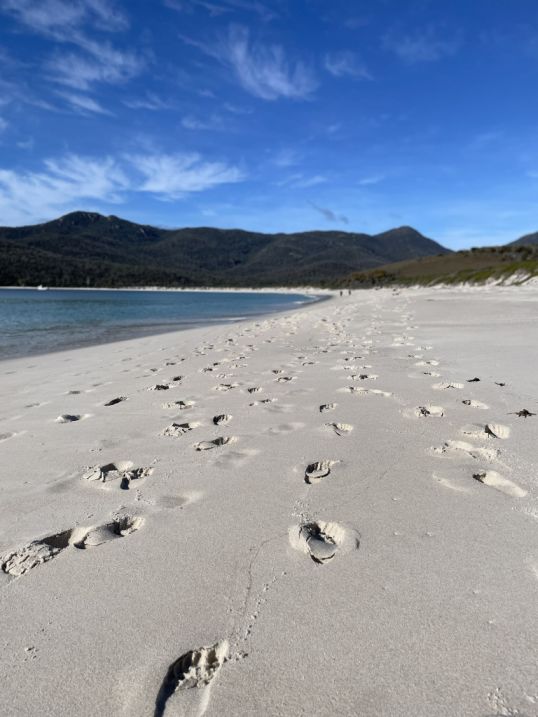 Though it’s a demanding walk, every step upward feels rewarding, a reminder of the effort it takes to reach and leave one of Tasmania’s most beautiful and remote beaches.