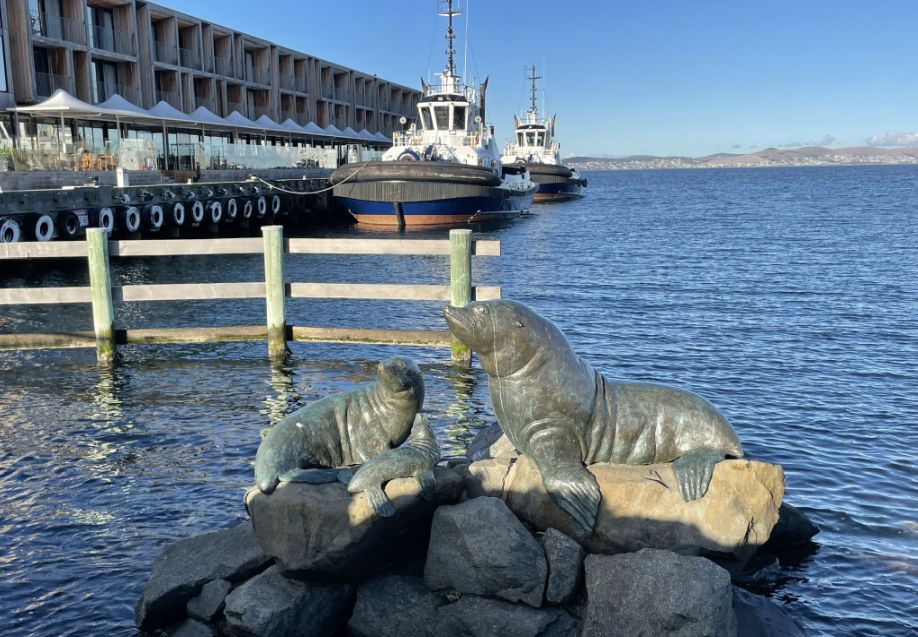 This is the Bernacchi Tribute, a monument dedicated to Louis Bernacchi, one of Tasmania’s most famous Antarctic explorers. He was the first Australian to winter on the Antarctic continent, and the statue celebrates both his courage and Hobart’s long-standing link to polar exploration. The seals and penguins at the base represent the wildlife of the Southern Ocean, a reminder of the wild, icy world that begins just beyond Tasmania’s southern horizon.