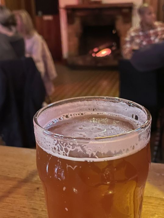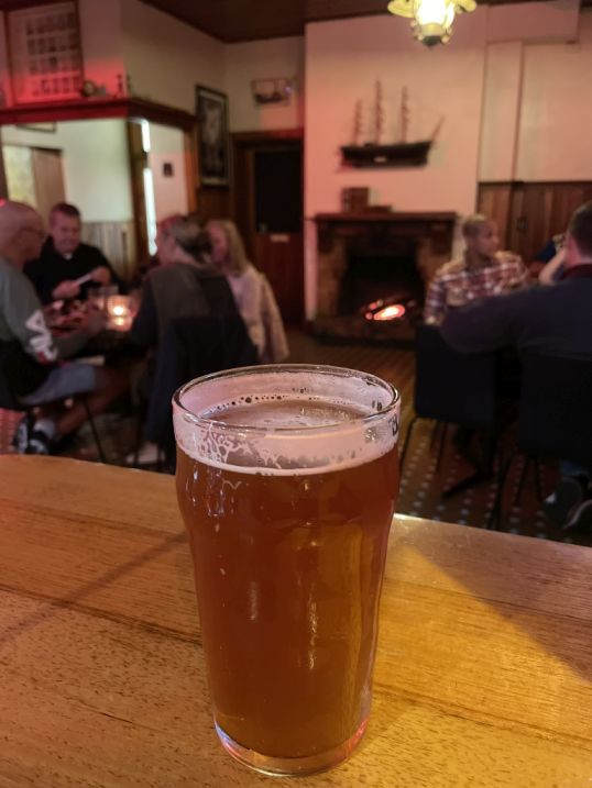 Inside, the Hope & Anchor has a warm, old-world atmosphere, cozy and dimly lit, with low timber ceilings supported by thick beams that have darkened beautifully over the years.