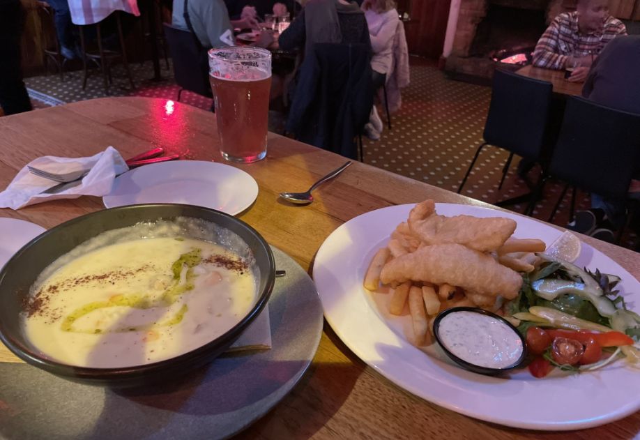 Eating by the warm light of the old tavern, with its wooden walls and maritime décor, made the meal feel even more special. It was simple, classic food served in a place steeped in centuries of history.