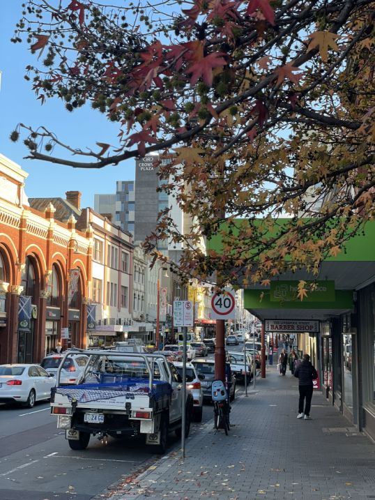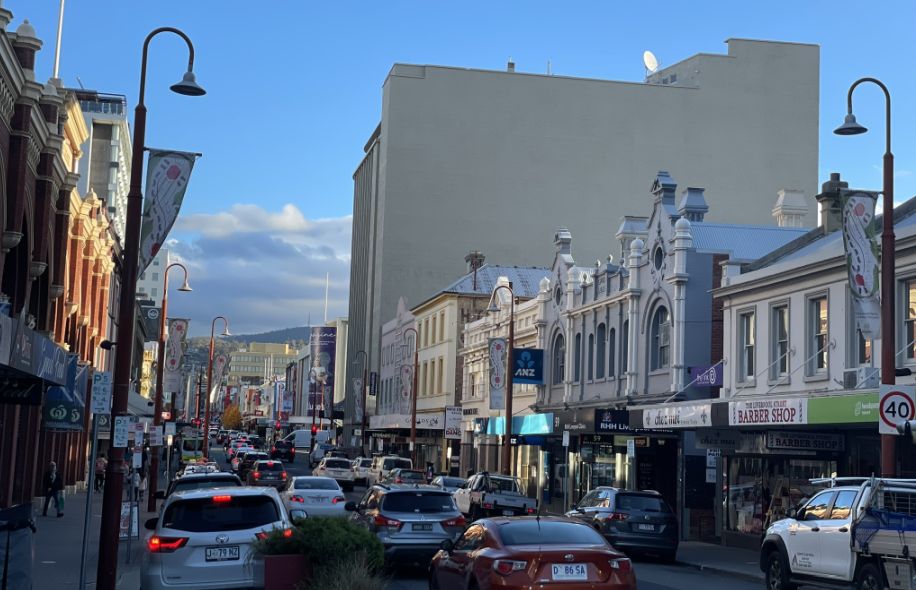 We are now on Liverpool Street, one of Hobart’s main thoroughfares that cuts right through the city center. It’s a lively and diverse street, part shopping strip, part historic corridor, where old and new Hobart meet in an easy blend of everyday life and local character.