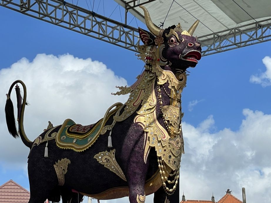In Bali, statues like this are placed at busy intersections to guard the area spiritually, and serve as a cultural landmark.