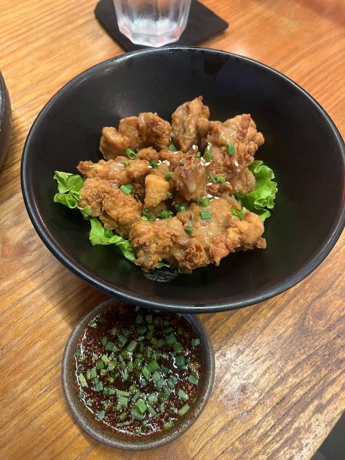 The savory chicken kaarage and a hearty bowl of noodles with tonkatsu rounded out a truly excellent and satisfying selection of dishes.