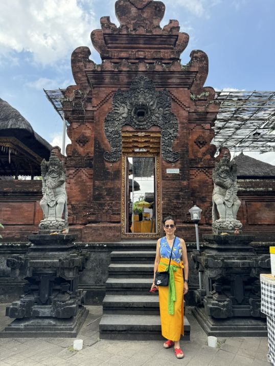 Today we are leaving Uluwatu and going to our rented villa in Seseh, and along the way we stopped to visit a few temples. Seseh is a quiet coastal village on Bali’s southwest coast, just north of Canggu, known for its peaceful atmosphere and traditional Balinese charm. Unlike the busier beach towns nearby, Seseh still feels like a real village, surrounded by green rice fields, small temples, narrow village roads, and local homes where daily ceremonies and offerings are part of everyday life.
