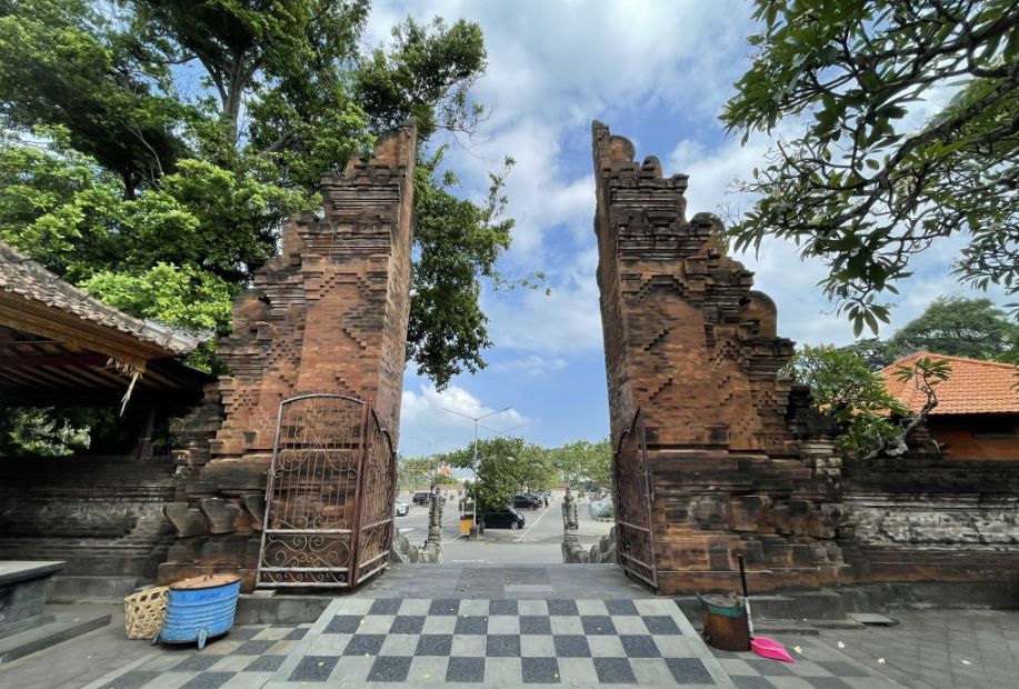 Candi Bentar and Paduraksa gate arrangement, a traditional Balinese temple gateway layout that reflects symbolic and spiritual hierarchy.
