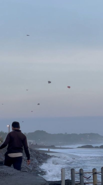 Looking up in the sky, silhouettes of kites drifting high above the beach add a playful, serene touch. With the wind off the ocean, the wide open coastline, and the calm atmosphere, it feels like a private slice of Bali, simple, natural, and beautifully unspoiled.