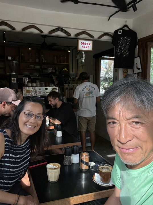 Afterwards, we took an Uber and headed to Canggu, a surf town first and foremost. It has a few major surf breaks (Echo Beach, Batu Bolong, Pererenan, Berawa), attracting both beginner and more experienced surfers. Over the past decade or so, Canggu has become a hub for digital nomads. It’s full of co-working spaces, wellness studios, and laid-back cafés. Beyond the beach, Canggu still has those lush Balinese rice fields. There are rice-paddy walks and cycling routes that show a quieter, greener side of Bali. There are lots of yoga and healing spaces, wellness cafés, and holistic retreats, which complements the surf culture.