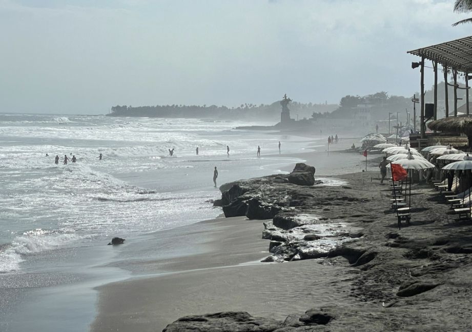 We walked by a beachfront lookout platform that line parts of Echo Beach. These platforms are built a bit above the sand and they serve a few purposes. Surfers use them to check the swell, tides, and break conditions before heading out. From the top, you can get a clear, unobstructed view of the surf lineup. Some platforms are part of the sea wall system that protects the shoreline from erosion. The stairs let people climb up to enjoy the view while still serving a practical function. For visitors, it’s simply a great vantage point. When you stand on top, you get a sweeping panorama of Echo Beach, the dark sand stretching out, La Brisa in the distance, and the endless horizon.