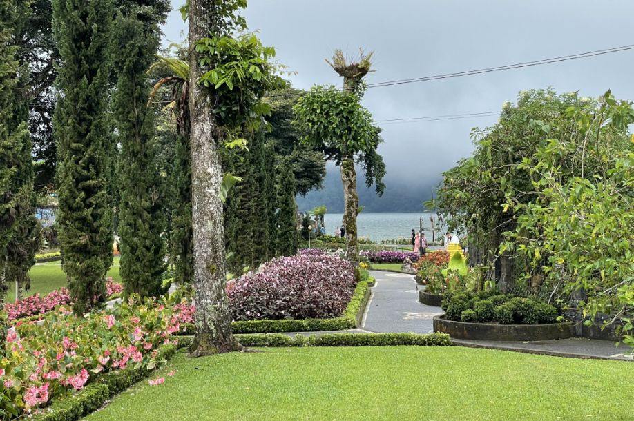 The garden path at Ulun Danu Beratan becomes almost whimsical as you move farther from the lakeside shrines, and the landscaping turns into a vibrant, colorful park filled with flowers.