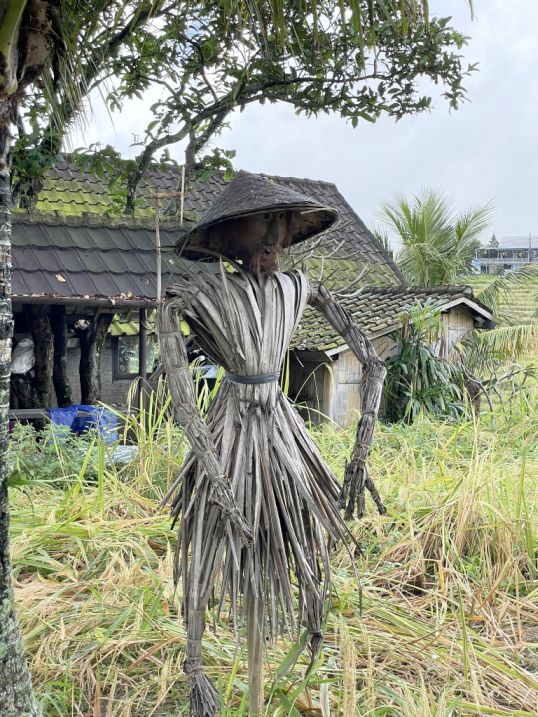 We passed a spot called Rustic Bali, and in front of it stood a charming, handmade scarecrow crafted entirely from dried palm leaves.