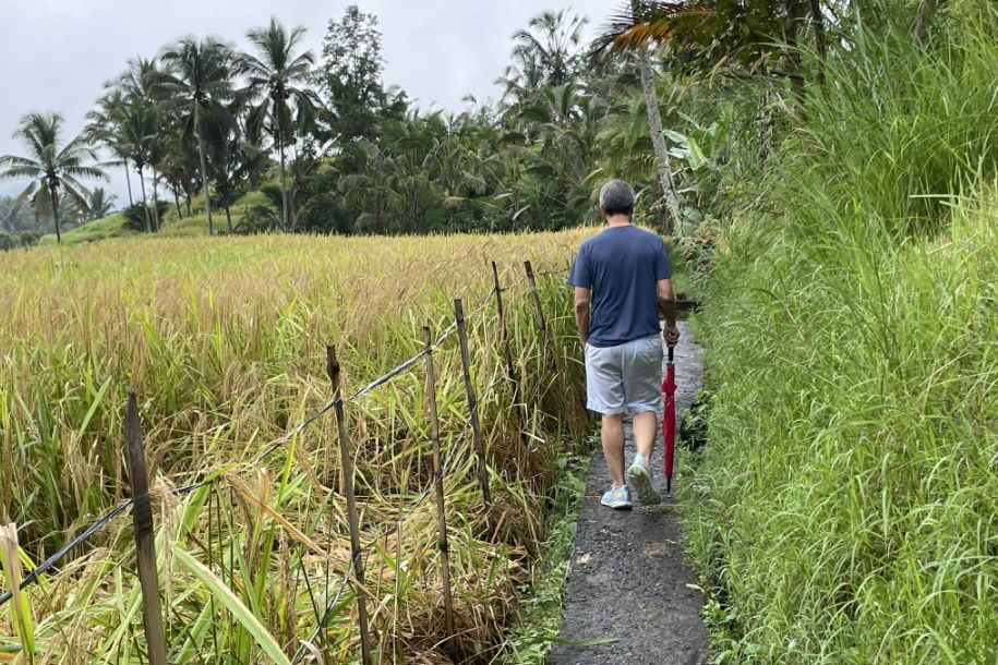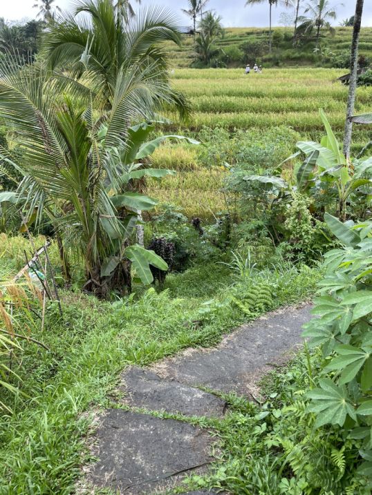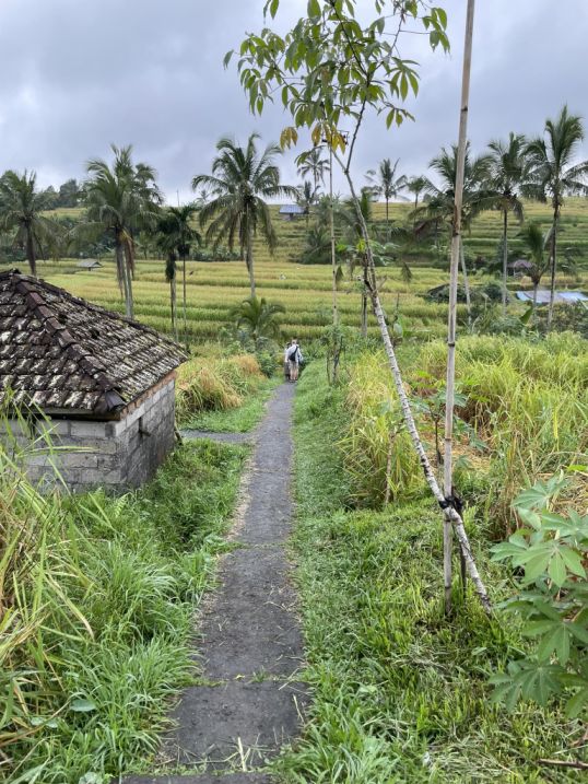 Our tour guide is now taking us to the rice fields by following a narrow dirt path called a pemantang in Balinese. They are built and maintained by the farmers (members of the Subak community) and are the only way to walk through the terraces without damaging the crops.