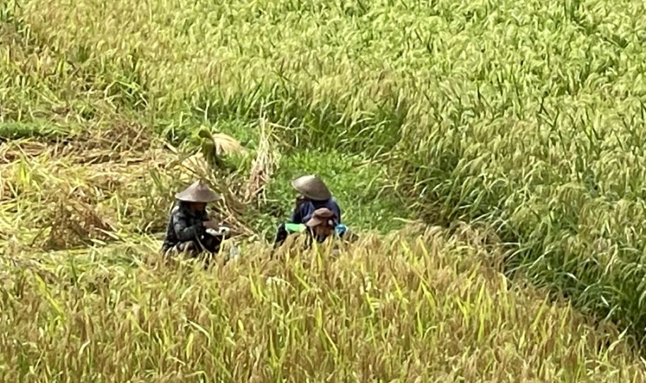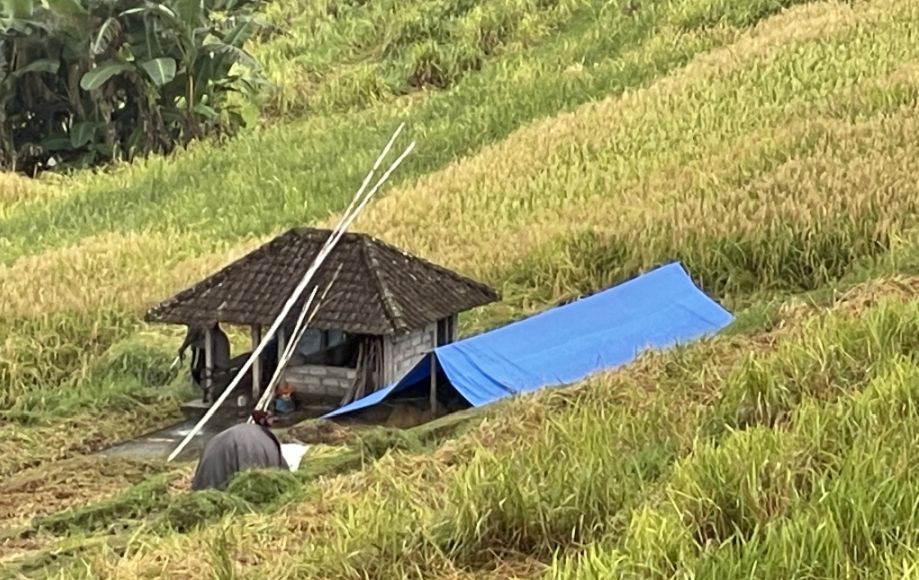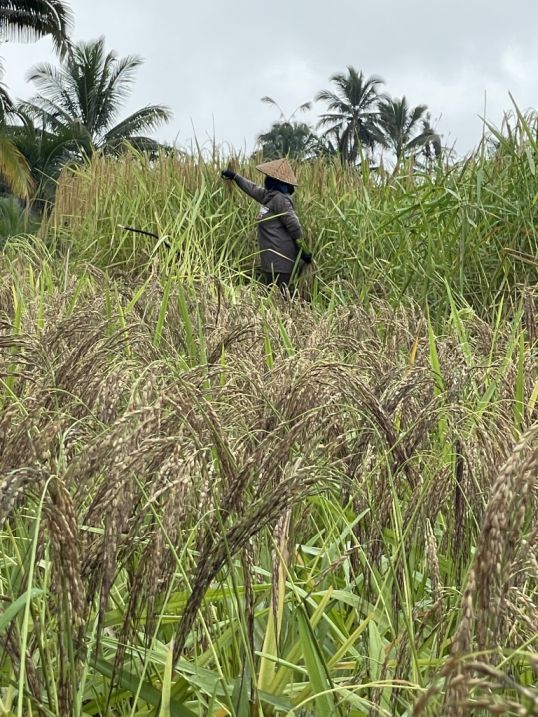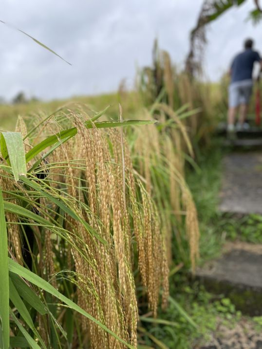 We are witnessing the transition from a beautiful field of golden plants to the actual food that feeds the community, a truly fundamental and meaningful sight in Bali.