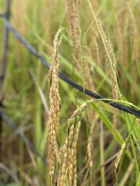 We stopped to take a close-up photo of the rice grains, and it’s the perfect moment to appreciate the beauty of the harvest season. The rice hung gracefully from the stalks, heavy with ripened grains, bending downward like tiny natural chandeliers. Up close, you could see each grain wrapped neatly in its husk, the color shifting from pale gold to deeper amber.